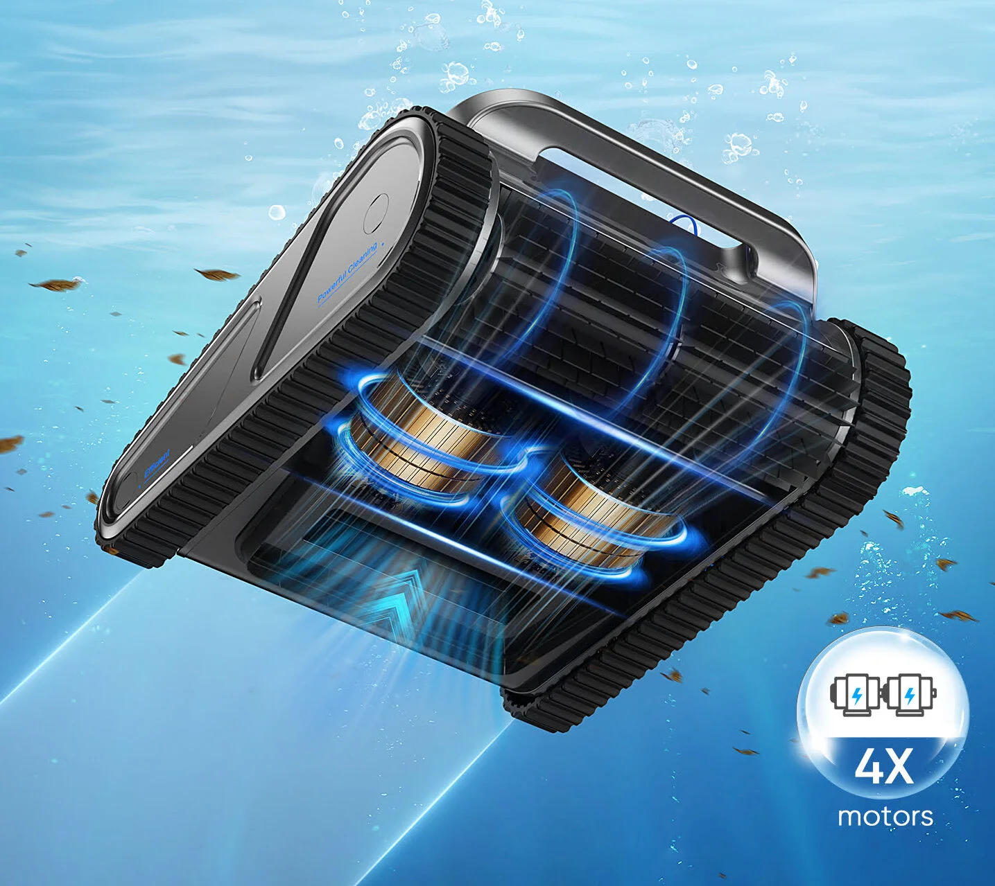Le Y50 Robotic Pool Cleaner est la solution haut de gamme pensée pour ceux qui veulent l’excellence sans compromis. Grâce à sa batterie surdimensionnée de 10 500 mAh, il garantit jusqu’à 255 minutes d’autonomie réelle, couvrant de vastes surfaces et assurant un nettoyage complet et intelligent pour les grands bassins (jusqu’à 150 m²). Ultra performant grâce à ses 4 moteurs brushless hydrodynamiques (4 300 RPM), il nettoie fond, parois et ligne d’eau, grimpe aux murs et s’adapte automatiquement à la configuration de votre piscine.